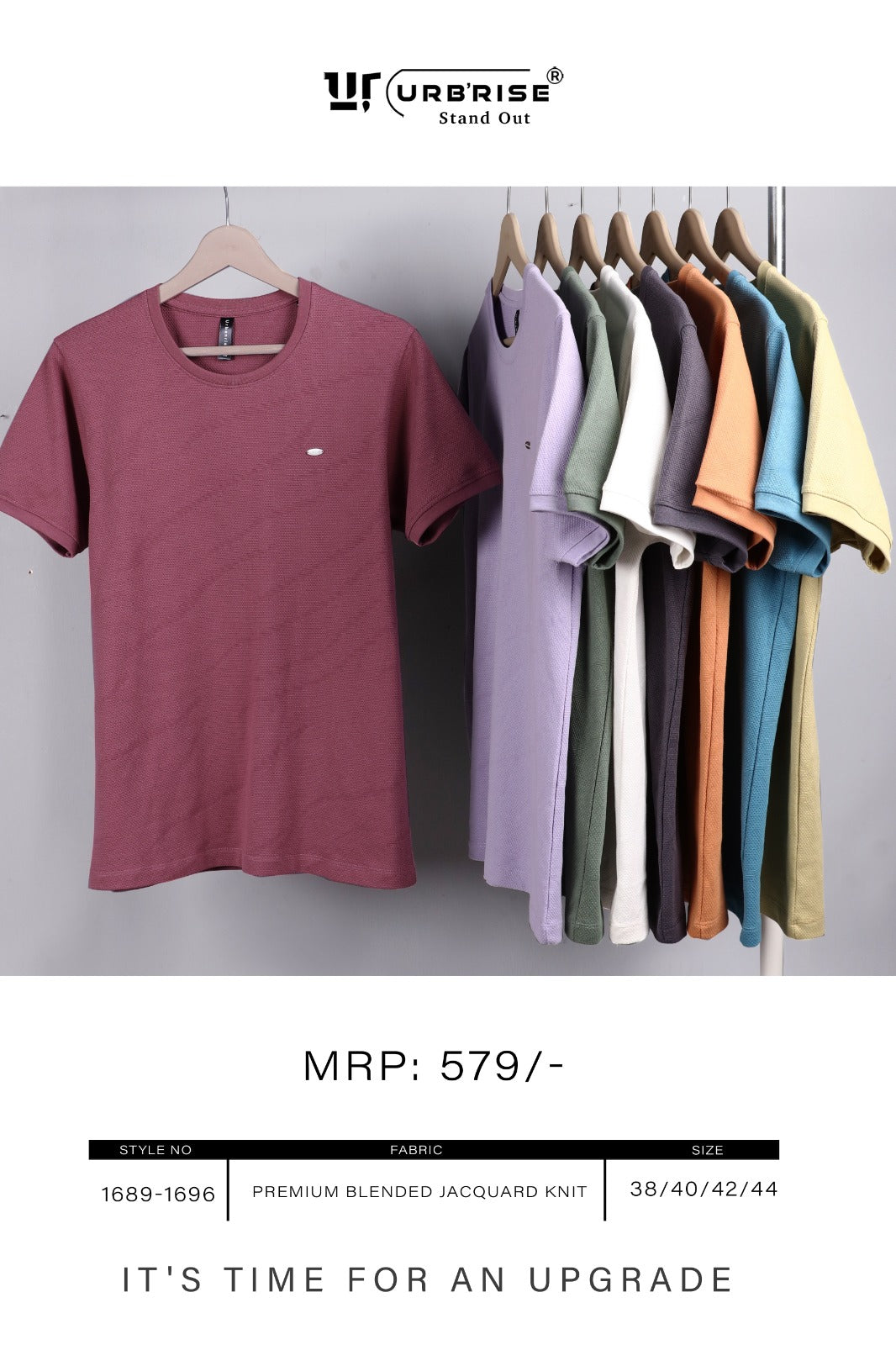 Concept: Branded Metal ID, Neck n Sleeves Lycra Rib Fabrics: Premium Blended Jacquard Knit, GSM. 215, Packing: Printed Soft LD Zipper Polybag, Master Photo Size: 38, 40, 42, 44 Ratio: Equal, Colors: 08, 08 Pcs Box Packing